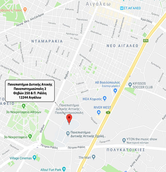 Η είσοδος στην Πανεπιστημιούπολη Αρχαίου Ελαιώνα είναι εφικτή από την Πύλη 3 επί της Λεωφόρου Πέτρου Ράλλη και από την Πύλη 2 επί της Λεωφόρου Θηβών.